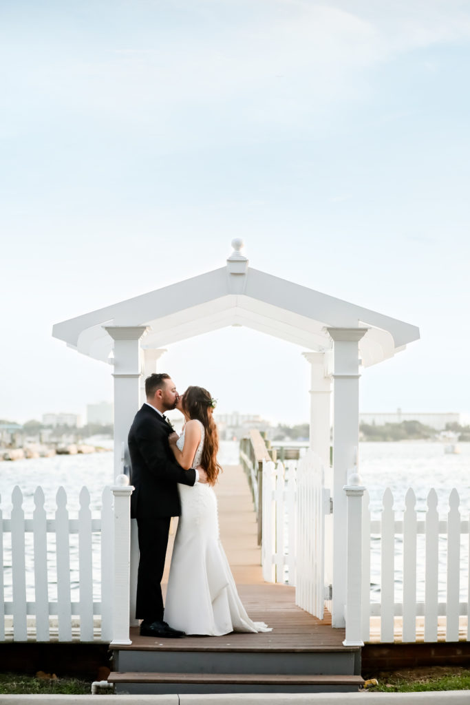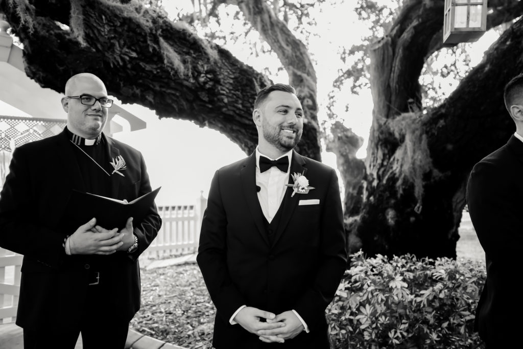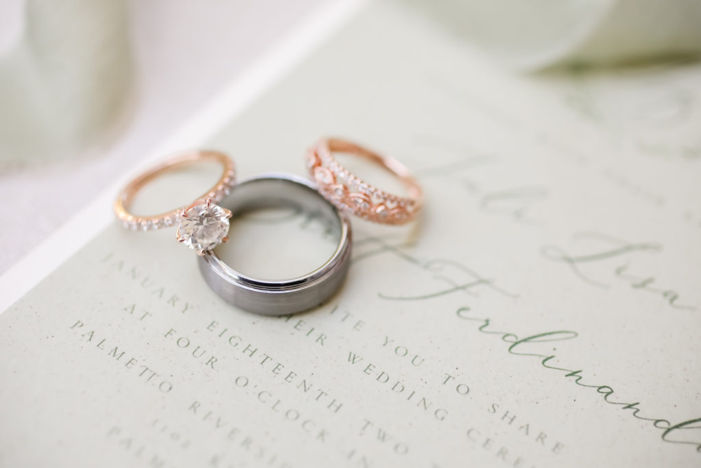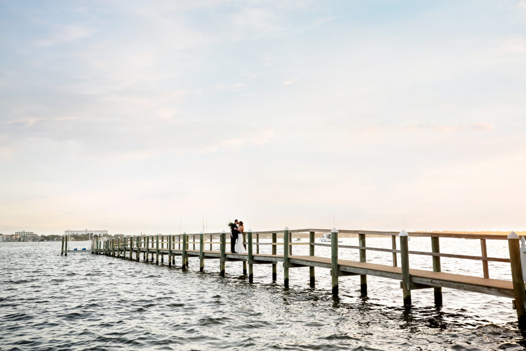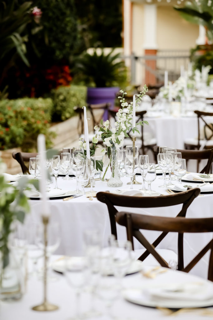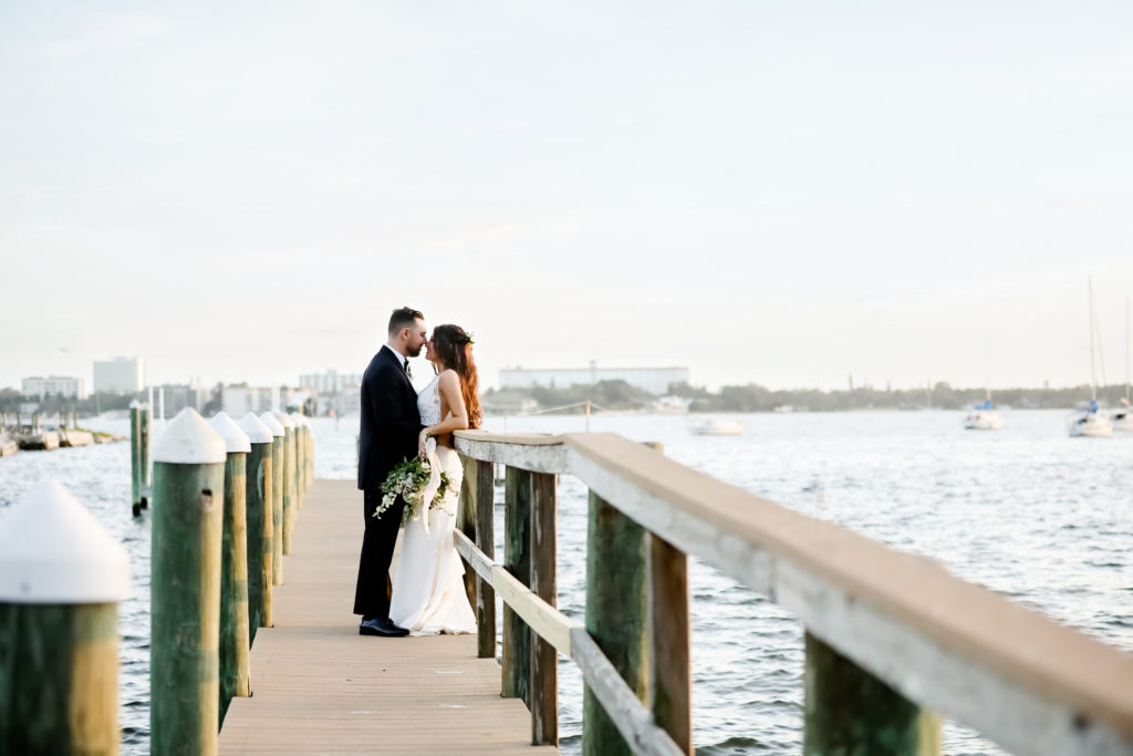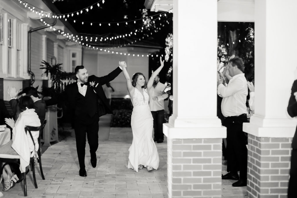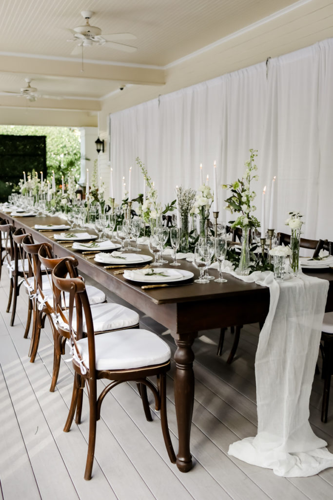 While we find it so exciting to shoot at the biggest, most ‘popping’ venues in Florida, sometimes shooting in an uncommon location can be so inspiring and an adventure! That is how we feel about Juli and Brett’s sweet backyard style wedding at the Palmetto Riverside Bed and Breakfast in Palmetto, FL. A color palette of various shades of white and greenery created a beautiful canvas for the breathtaking day. Their classic yet boho vibe flourished at this venue, and every detail was a representation of the couple’s fun and loving personalities. The bride showed off a custom jean jacket that added a cheerful, personal touch to her bridal attire. Also… a wedding BOUNCEHOUSE?! Yeah, we were pretty stoked about it too…