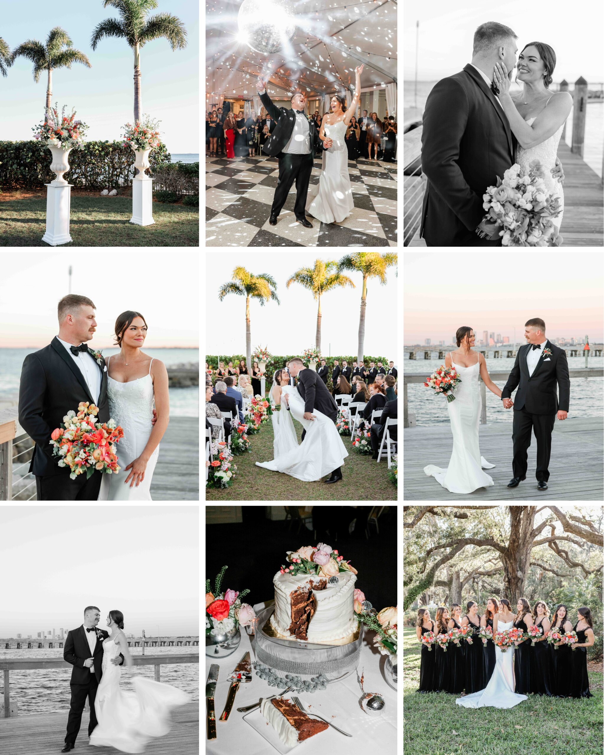 A January wedding at Tampa Yacht Club is always timeless, but this celebration added a modern twist that made it truly unforgettable. Set against the waterfront views and classic elegance of the venue, the evening came alive with shimmering disco balls that reflected light across the dance floor. It was joyful, stylish, and full of energy—the perfect way to start the year and a beautiful reminder that winter weddings in Tampa can be just as vibrant as any summer celebration.