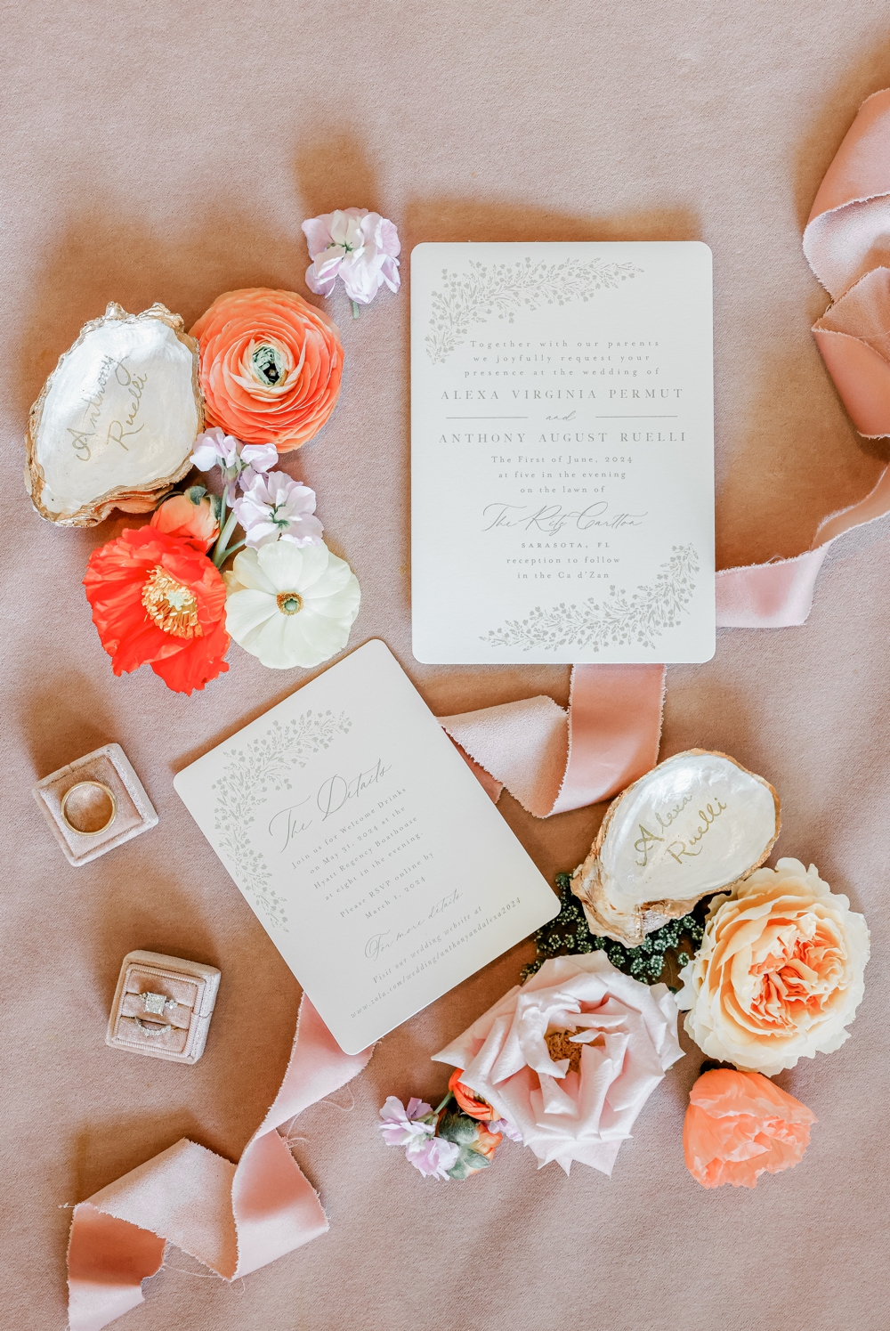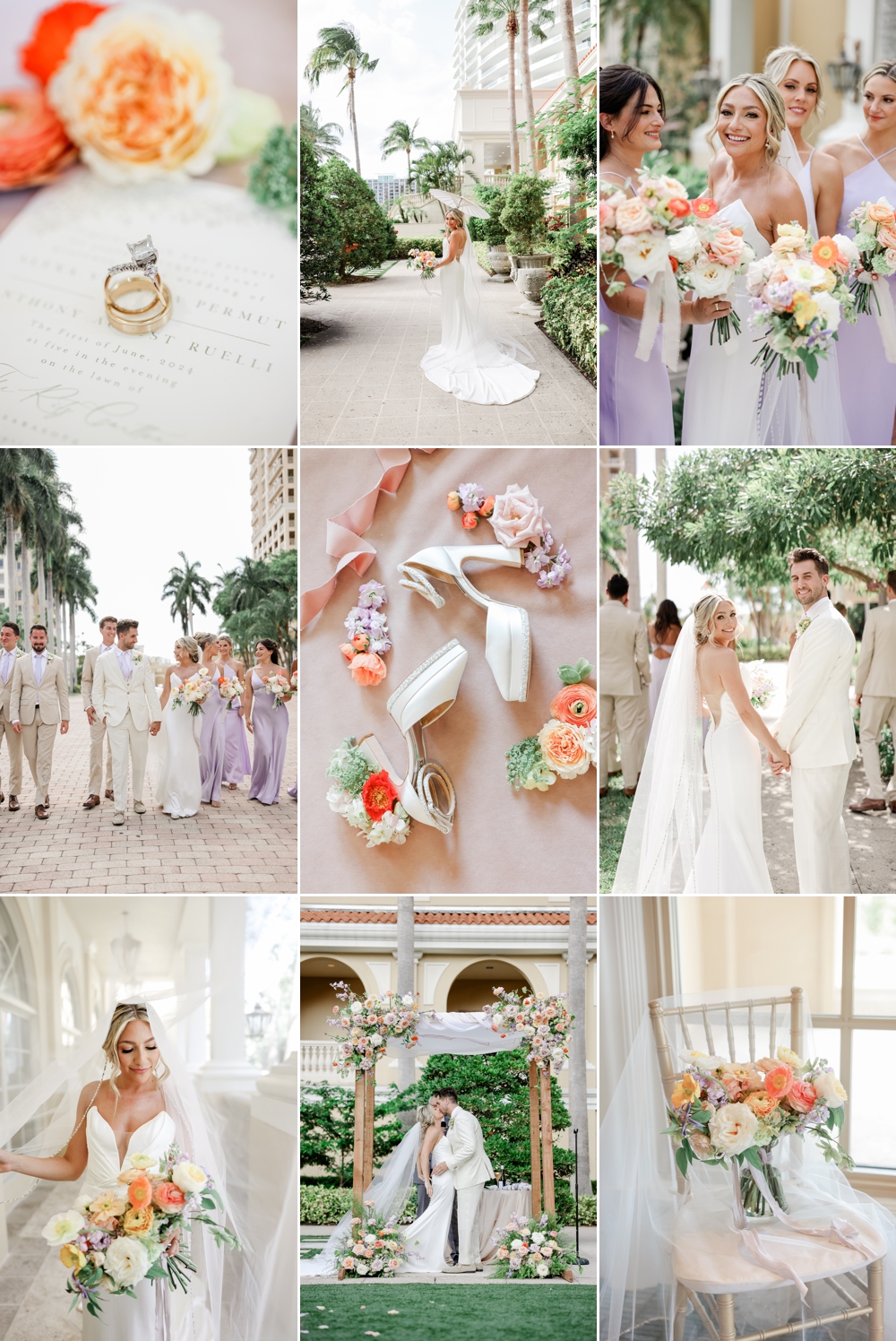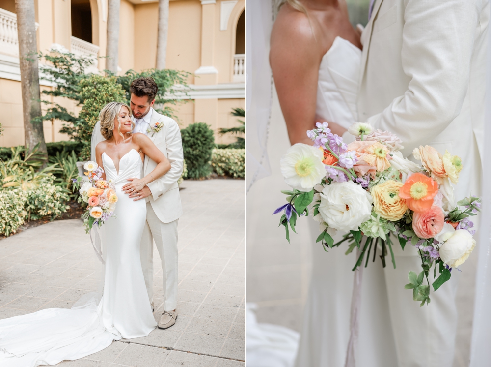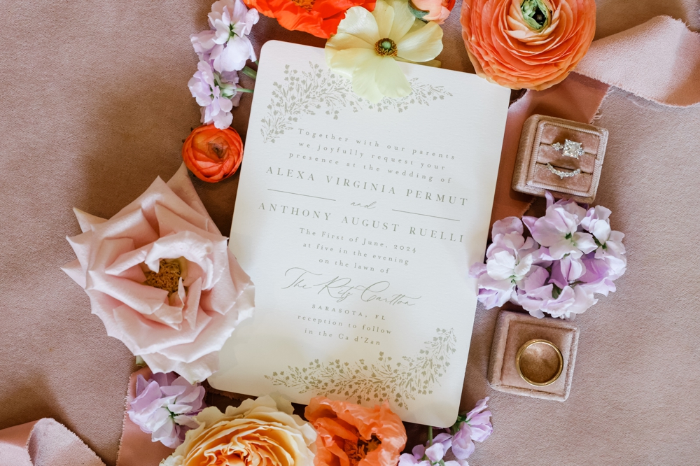 The Ritz Sarasota set the stage for an unforgettable wedding as Anthony and Alexa tied the knot. With a color palette of soft pinks and light purples, accented by eye-catching pops of orange in the flowers, the day was a visual delight.