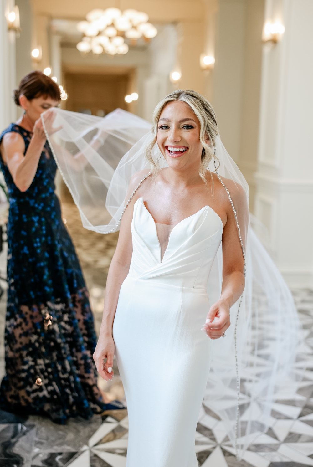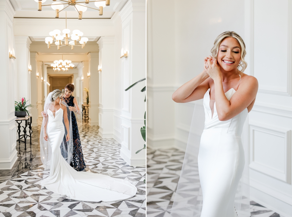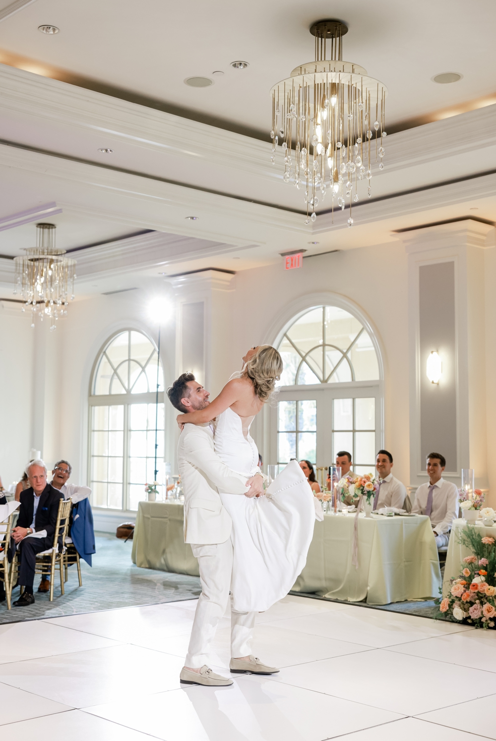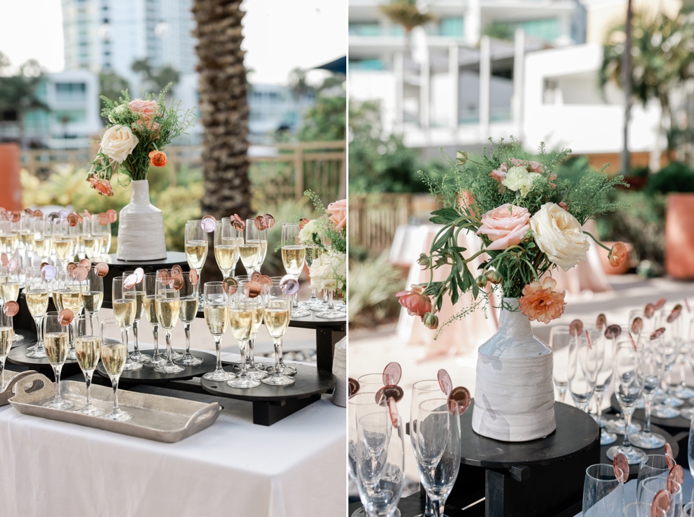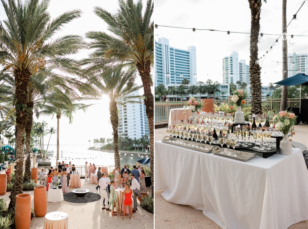 Guests enjoyed cocktails filled with laughter and conversation as the atmosphere buzzed with excitement. The couple opted for a sleek yet warm décor that enhanced The Ritz Sarasota’s elegance.