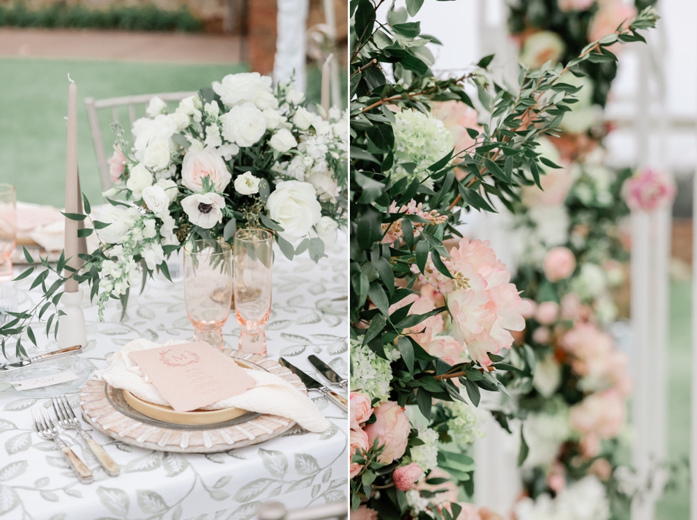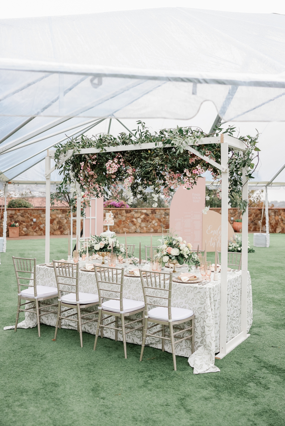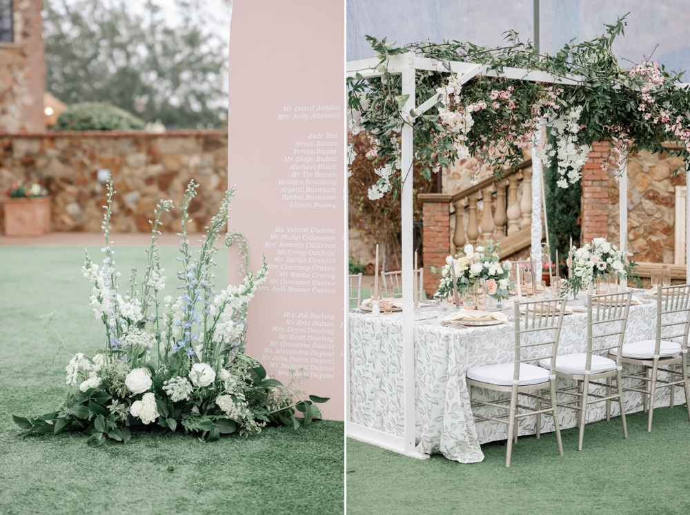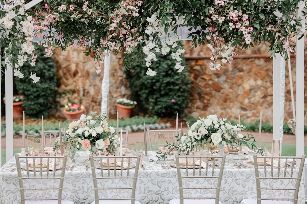 As if that weren’t enough, the reception table was transformed into a floral wonderland with a custom hanging canopy of flowers. This breathtaking installation not only served as a stunning centerpiece but also added a touch of magic to the entire celebration.