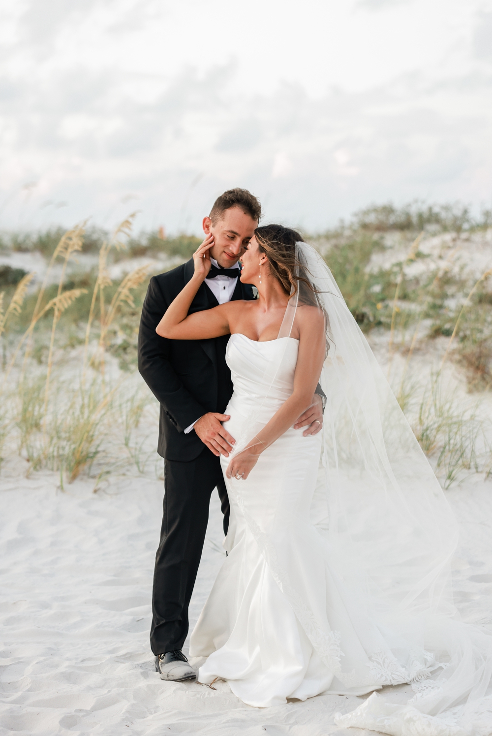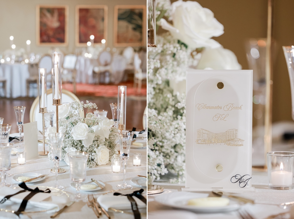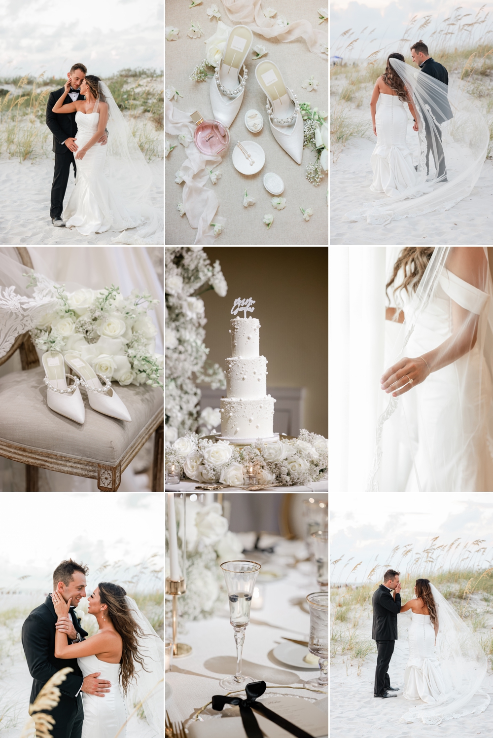 The celebration moved to the Sandpearl Resort, where guests enjoyed breathtaking Gulf views and a sophisticated reception. The classic white color scheme continued, creating an elegant atmosphere. As the sun set over Clearwater Beach, the couple shared their first dance, followed by laughter, heartfelt toasts, and dancing.