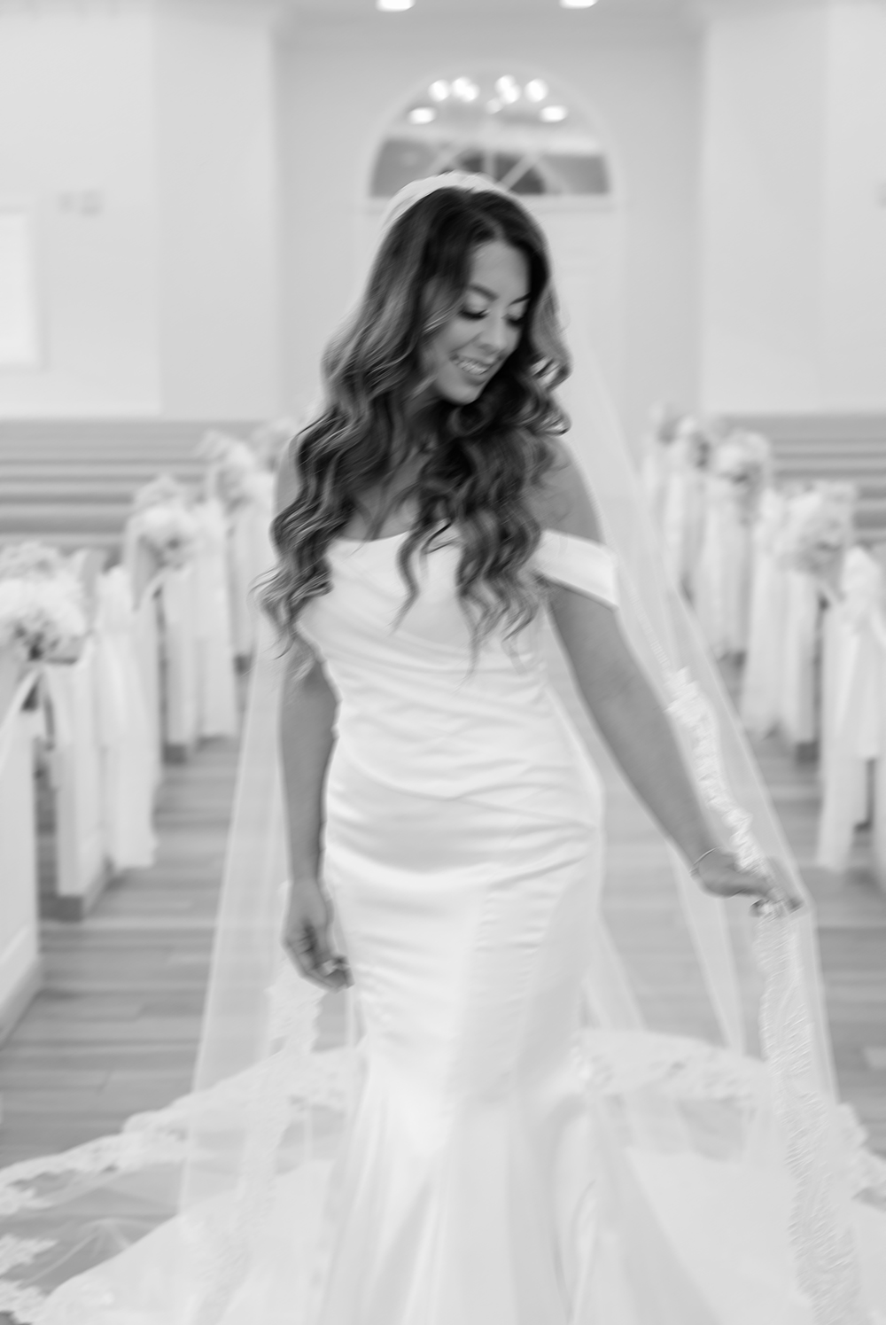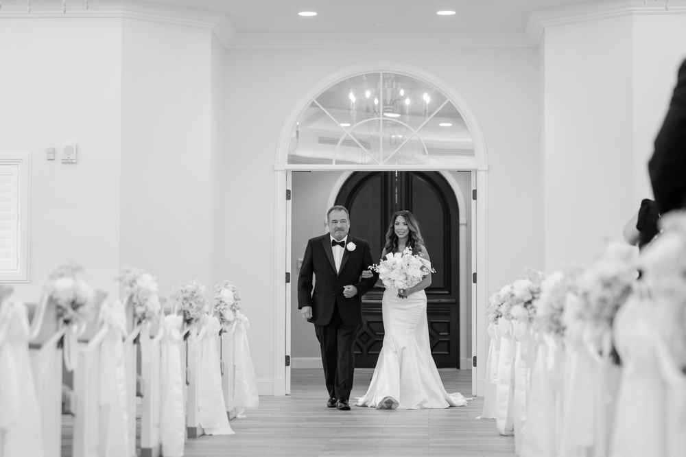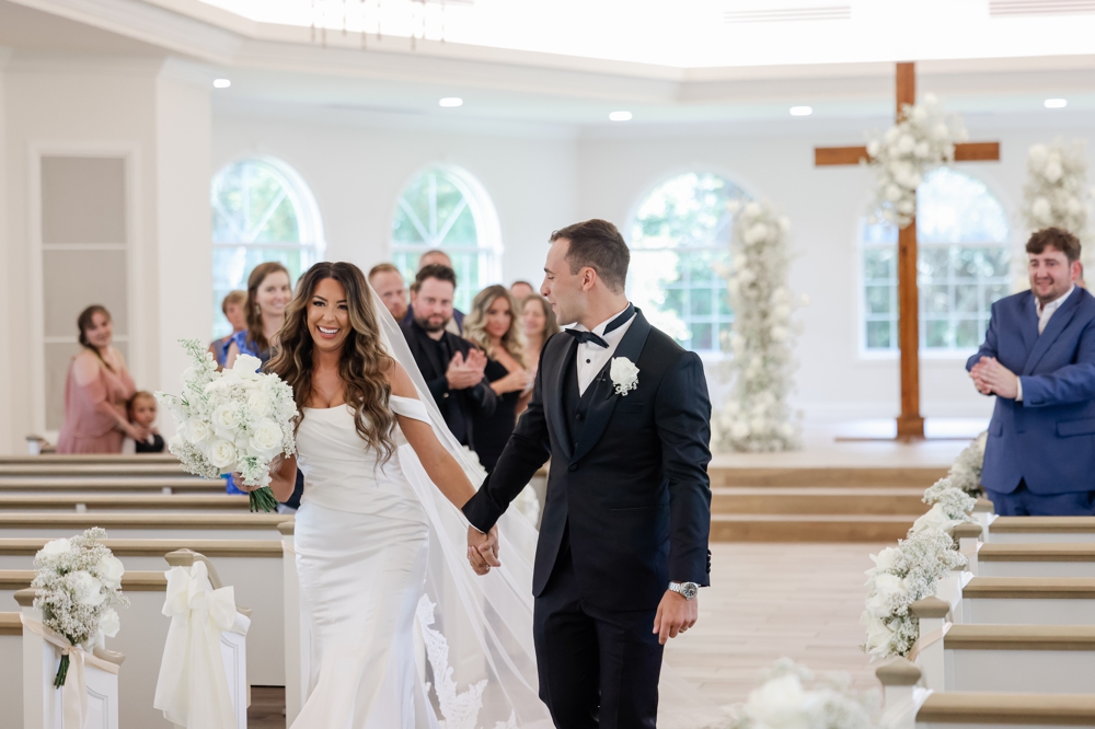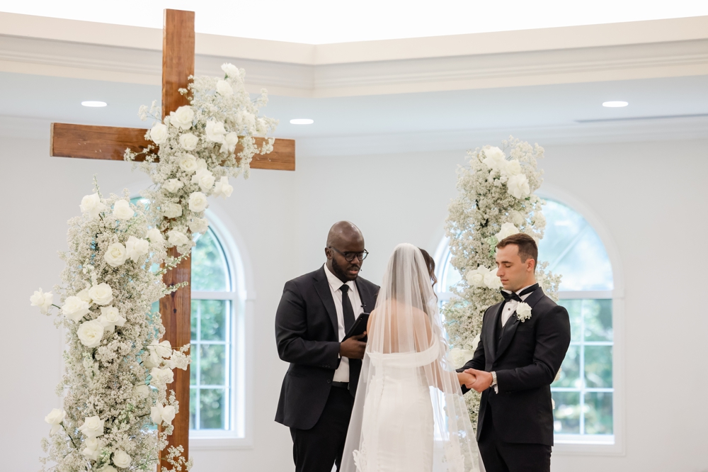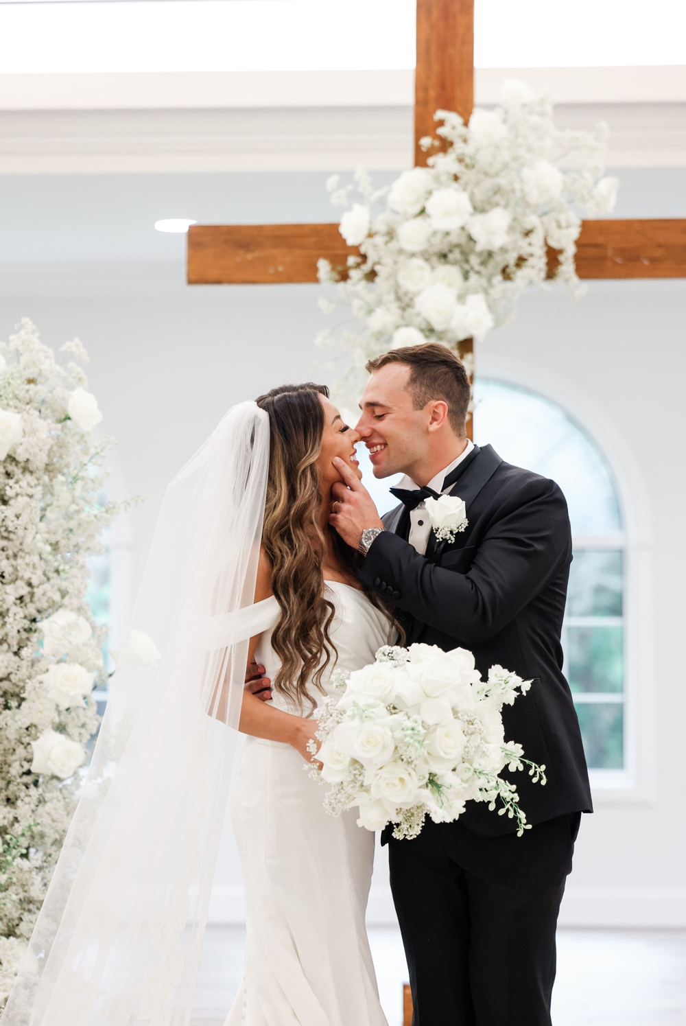The couple began their day with a classic white-themed ceremony at Harborside Chapel. Surrounded by elegant decor and soft lighting, they exchanged vows in an intimate and timeless setting. The bride looked radiant in her gown as they promised a lifetime of love in front of their closest family and friends.