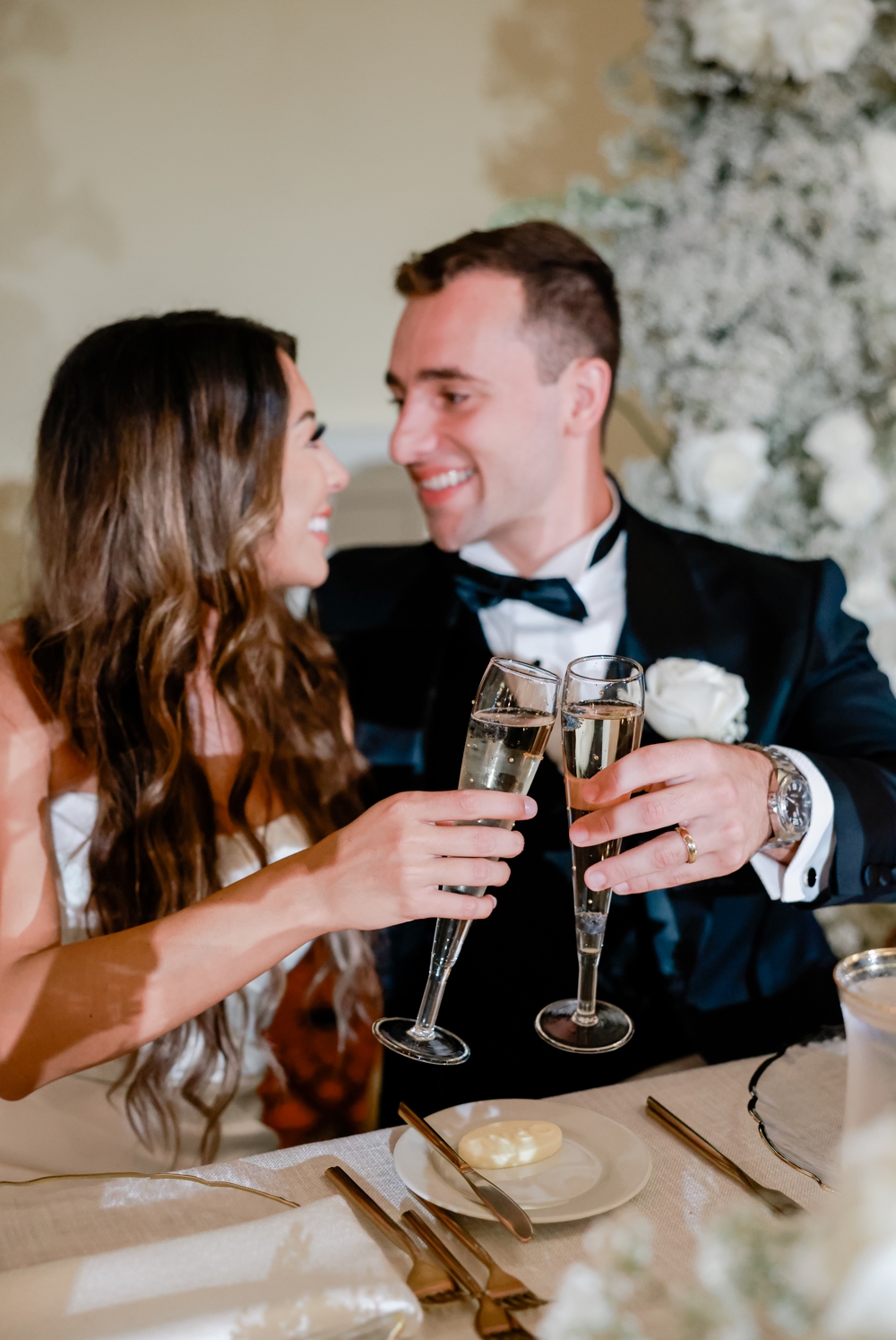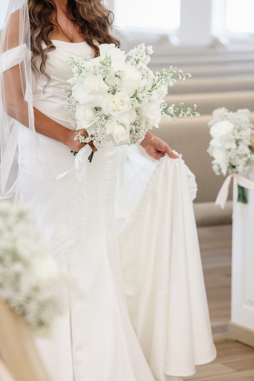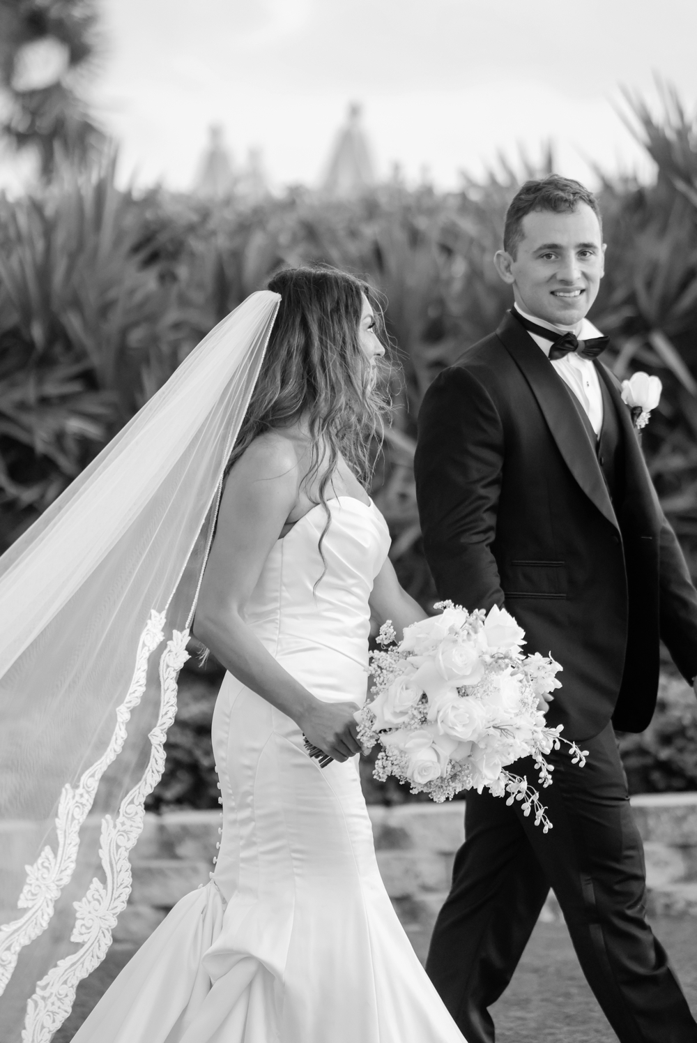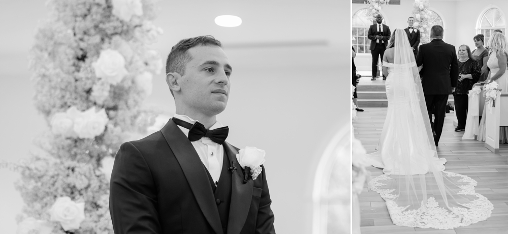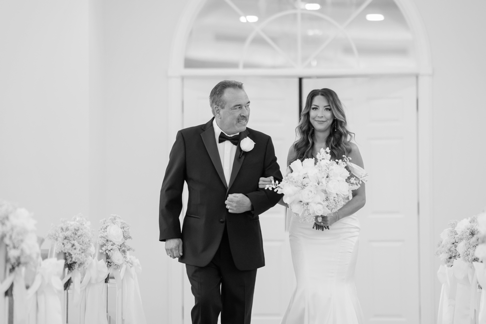 The couple began their day with a classic white-themed ceremony at Harborside Chapel. Surrounded by elegant decor and soft lighting, they exchanged vows in an intimate and timeless setting. The bride looked radiant in her gown as they promised a lifetime of love in front of their closest family and friends.