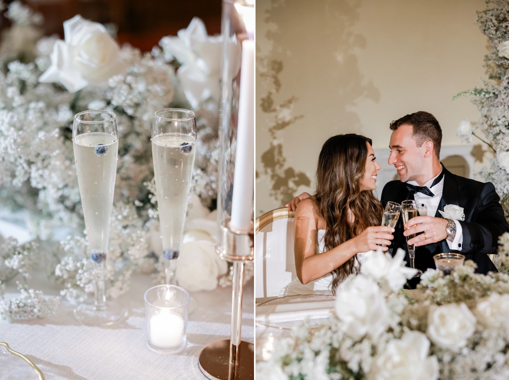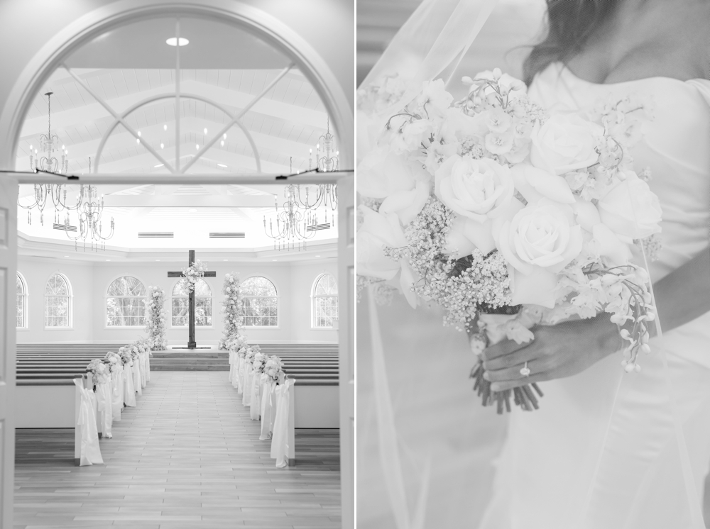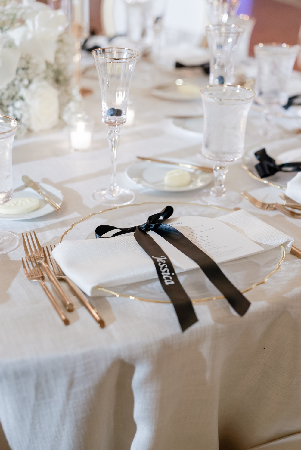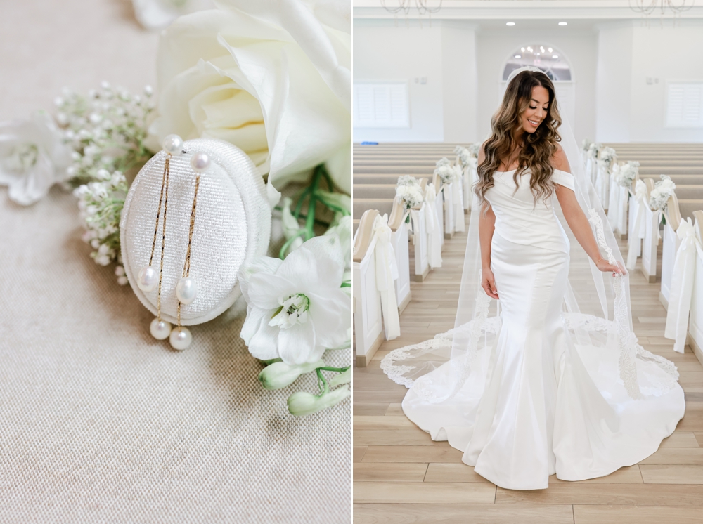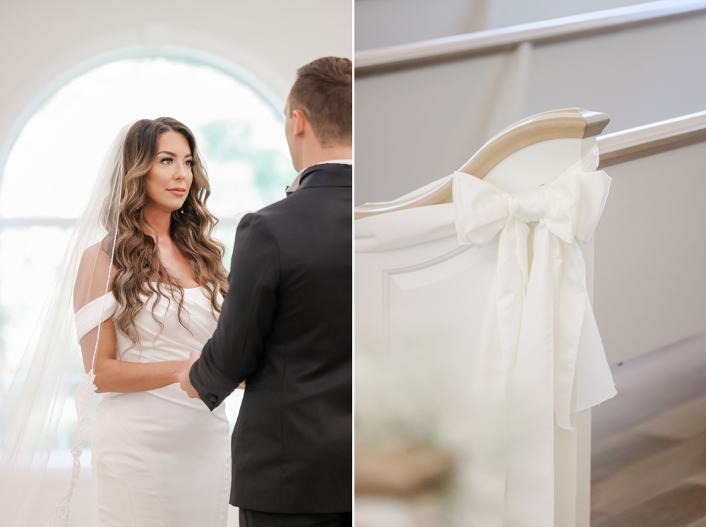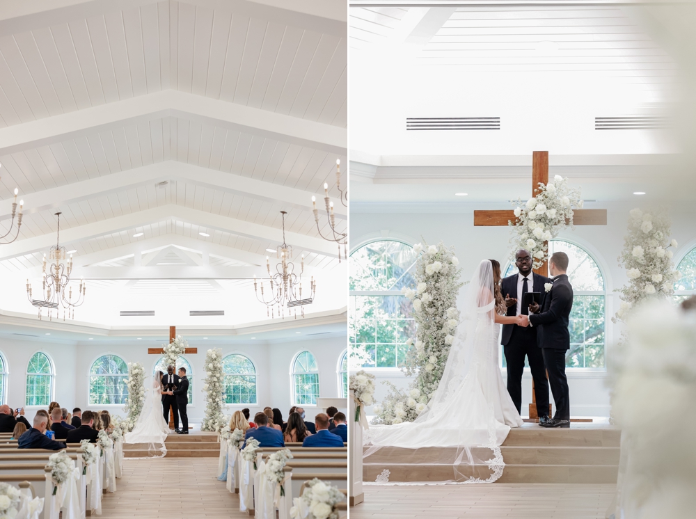 The couple began their day with a classic white-themed ceremony at Harborside Chapel. Surrounded by elegant decor and soft lighting, they exchanged vows in an intimate and timeless setting. The bride looked radiant in her gown as they promised a lifetime of love in front of their closest family and friends.