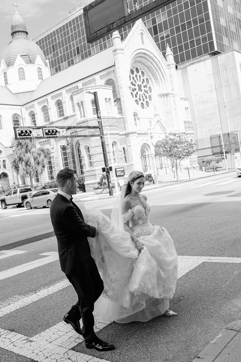 Christel & David Wedding at Sacred Heart Catholic Church in Tampa, Florida Planning company- Blue Skies Entertainment DJ- https://www.facebook.com/hagzproductions/ Florist- Iza’s Flowers Hair and Makeup- Femme Akoi Videographer- Storybook Films Wedding Cake- Sweets Bakehouse Ceremony Location- Sacred Heart Reception Location- Tampa Marriot Water Street